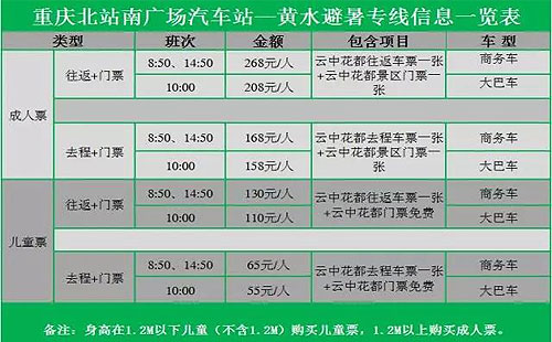 值得注意的是:6人以上(含6人)可自定發(fā)車時間,返程游客均可在云中花都景區(qū)及黃水鎮(zhèn)多個乘車點乘車返程,返程電聯(lián):023-89139936(重慶北站南廣場汽車站)