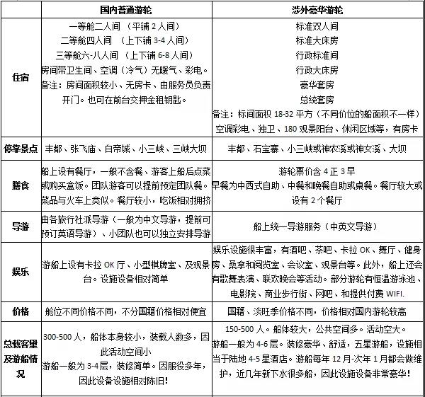 三峽國內(nèi)船與三峽豪華游輪的區(qū)別