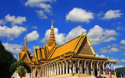 金邊皇宮也稱四臂灣大王宮,因位于湄公河、洞里薩河與巴薩河的交匯處而得名。柬埔寨金邊王宮是一組金色屋頂、黃墻環(huán)繞的建筑,包括曾查雅殿、金殿、銀殿、舞樂殿、寶物殿等大小宮殿二十多座,回廊上是仿吳哥寺的浮雕。