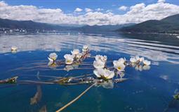這是一片美到無法呼吸的神奇樂土,一大片白霧朦朧的蘆葦,在陽光下風情萬種地搖曳,一座高高的山下,一大片藍汪汪的水,象美人的眼睛波光流動。遠處的馬匹、樹木、高山……在晨霧中隱隱約約象一幅淡淡的水墨畫,讓人著迷、讓人心曠神怡……這里就是麗江海畔度假營地。
